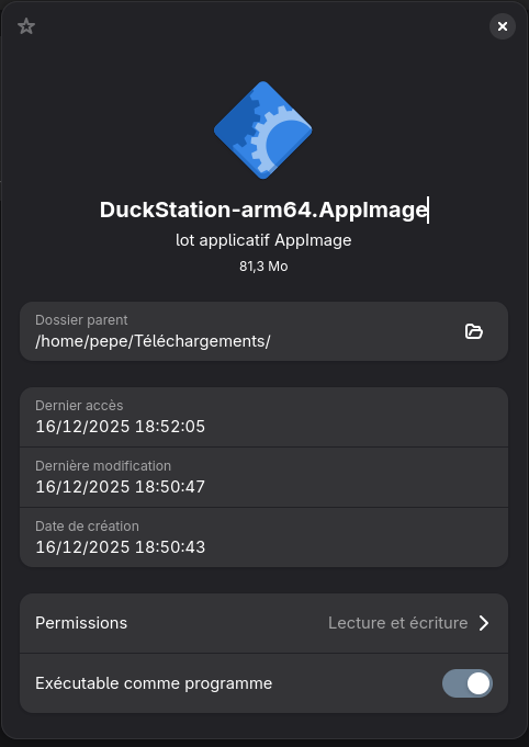 ~/Téléchargements/DuckStation-x64.AppImagepuisque tu es initialement dans ton répertoire utilisateur (~).)