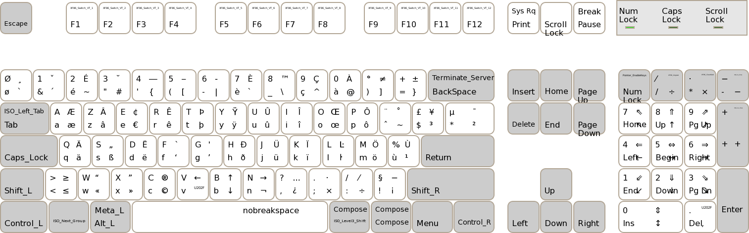 Pour xkbprint, j'ai essayé pleins d'options, j'arrive par exemple à quelque chose de ce genre (de mémoire, je n'ai pas mon linux sous la main) :