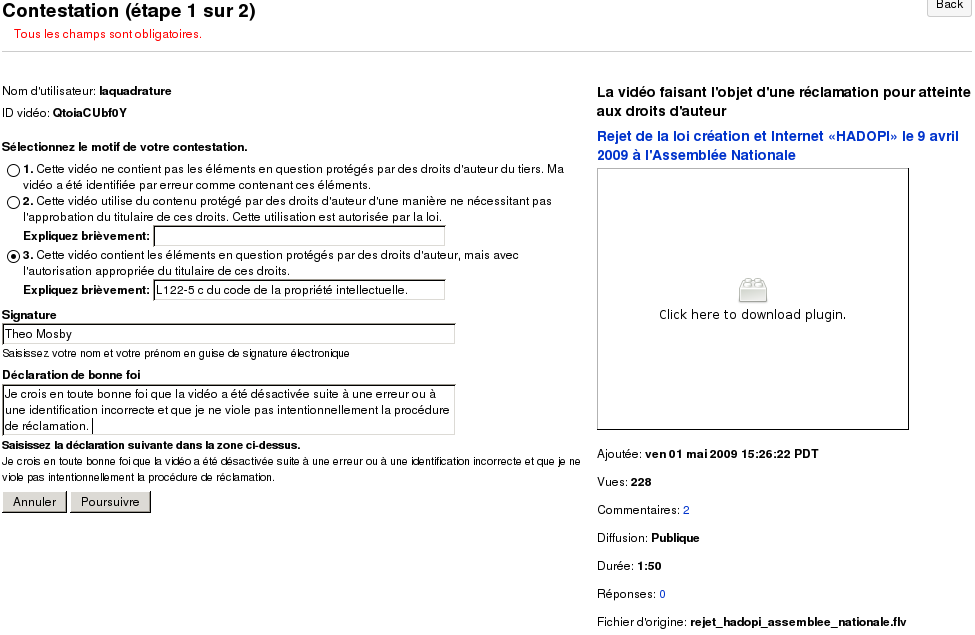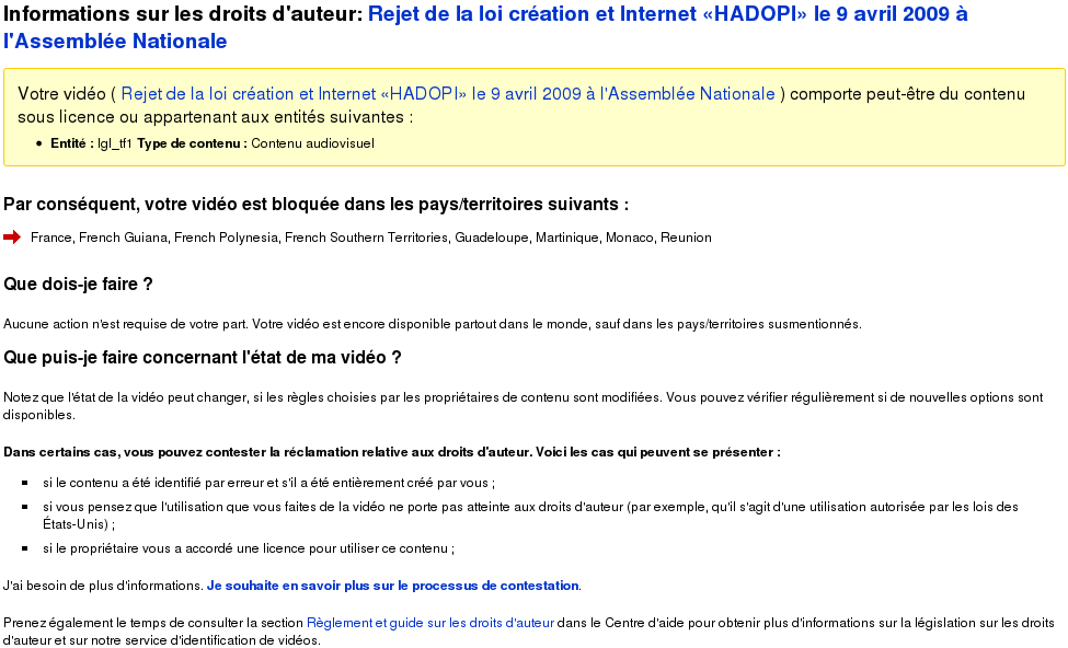 2) Le processus pour rétablir la vidéo est simple et rapideSimple, c'est subjectif.http://www.framablog.org/public/_img/others/tf1_censure_hado(...)