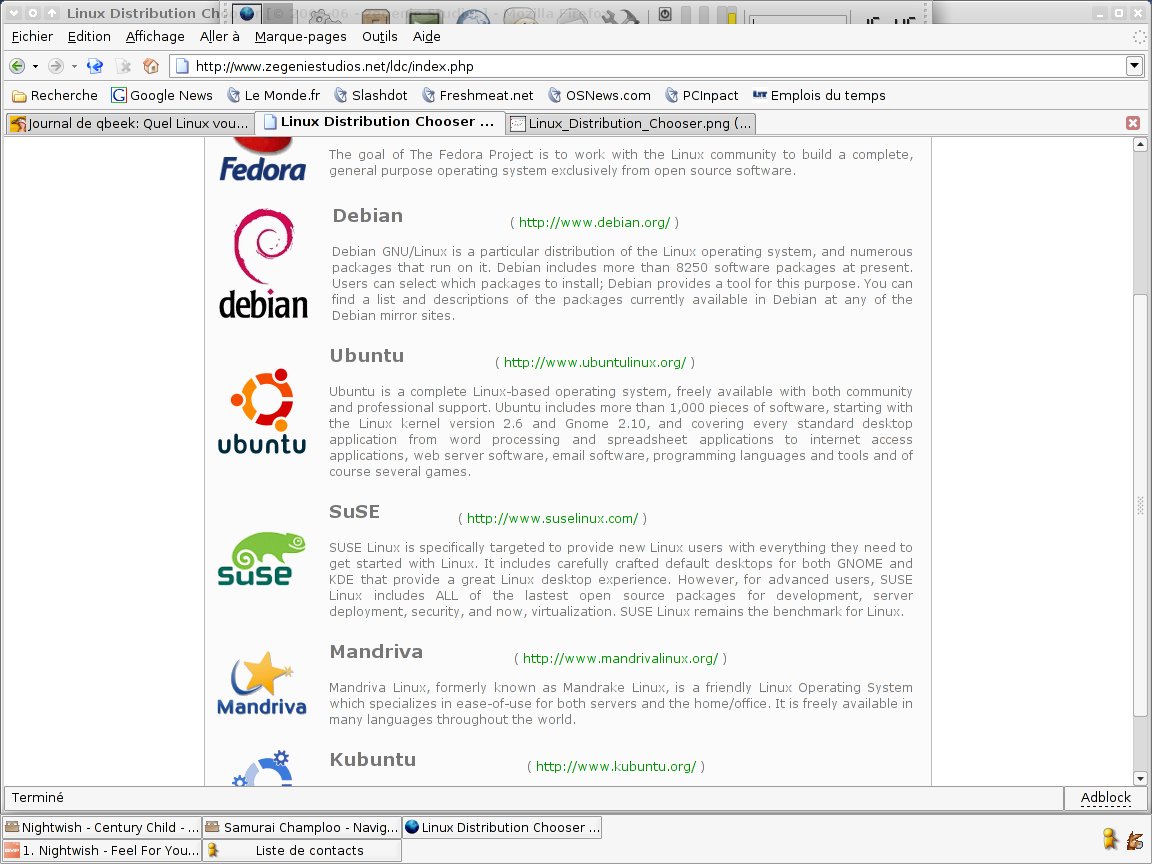 C'est marrant, j'ai dû tout répondre pour avoir du Debian parce que mon résultat est : Debian / Kubuntu / MEPIS / Knoppix